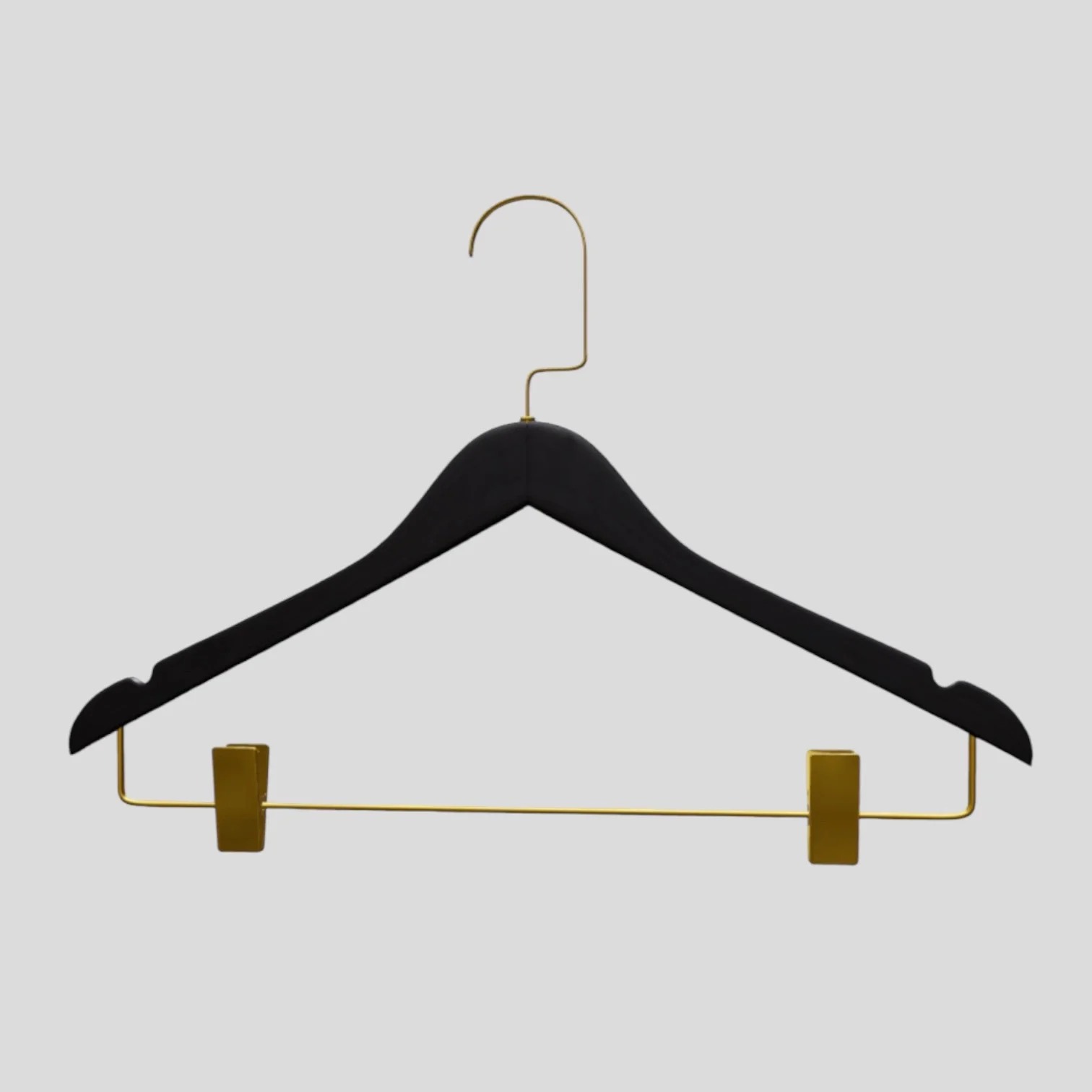 Siyah Ahşap Gold Lama Kancalı Maşalı Elbise Pantolon Askısı Hakkında