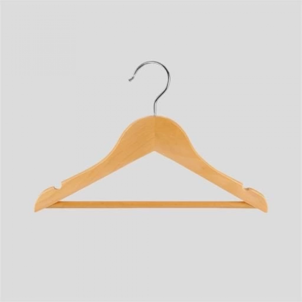 Naturel Ahşap Nikel Lama Kancalı Elbise Pantolon Askısı