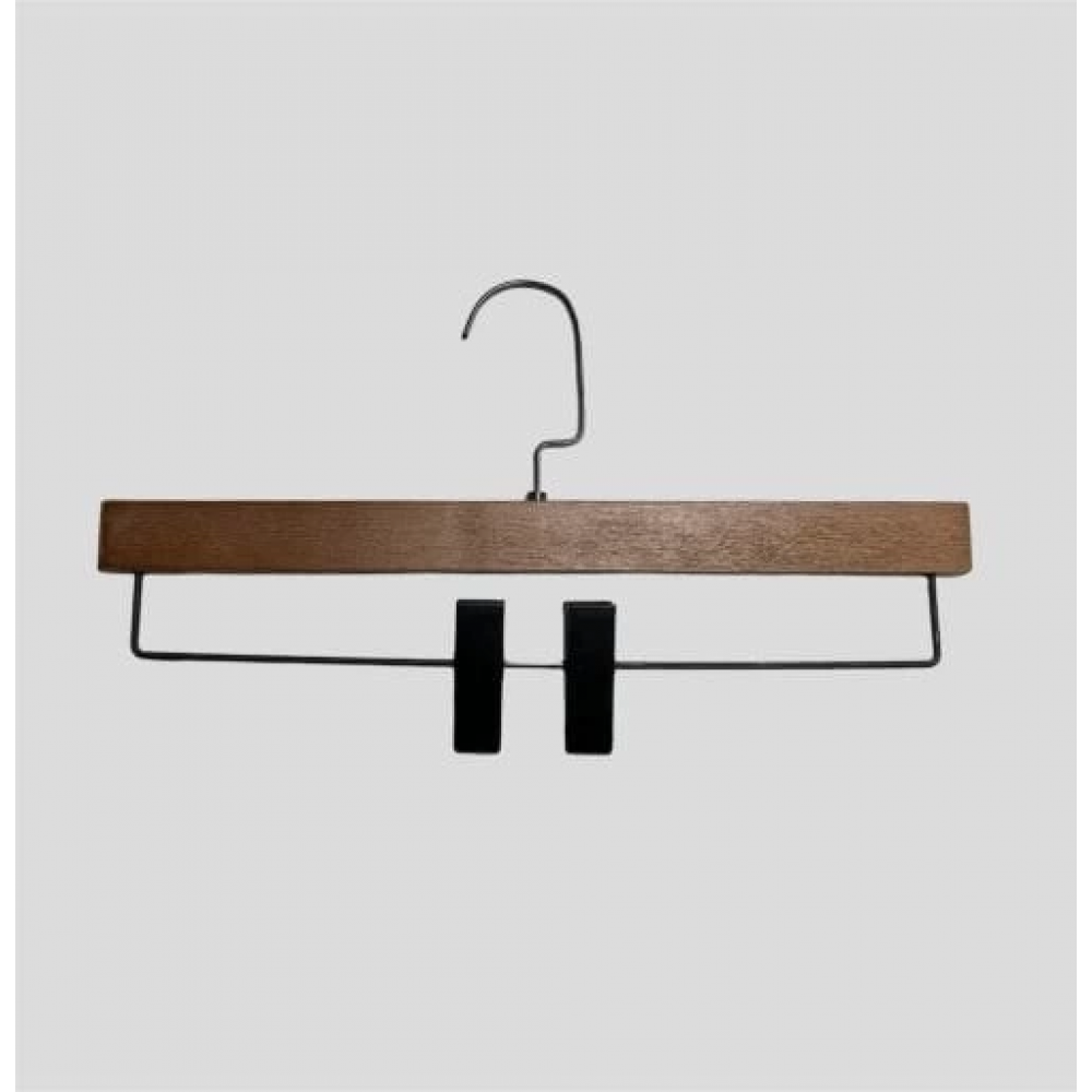 Ceviz Ahşap Siyah Lama Kancalı Elbise Pantolon Askısı